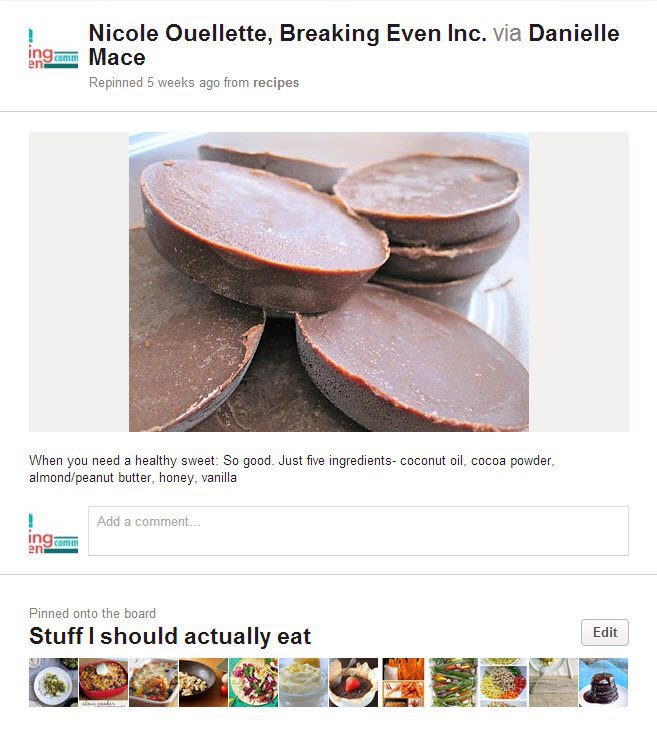 Seriously, I try a lot of Pinterest stuff that’s kind of ‘meh’ but this is so fantastic that Derrick thought I made it for him as a treat. A great chocolate fix without making me feel like I’m undoing a week’s worth of good eating behavior! Let me know if you like it!